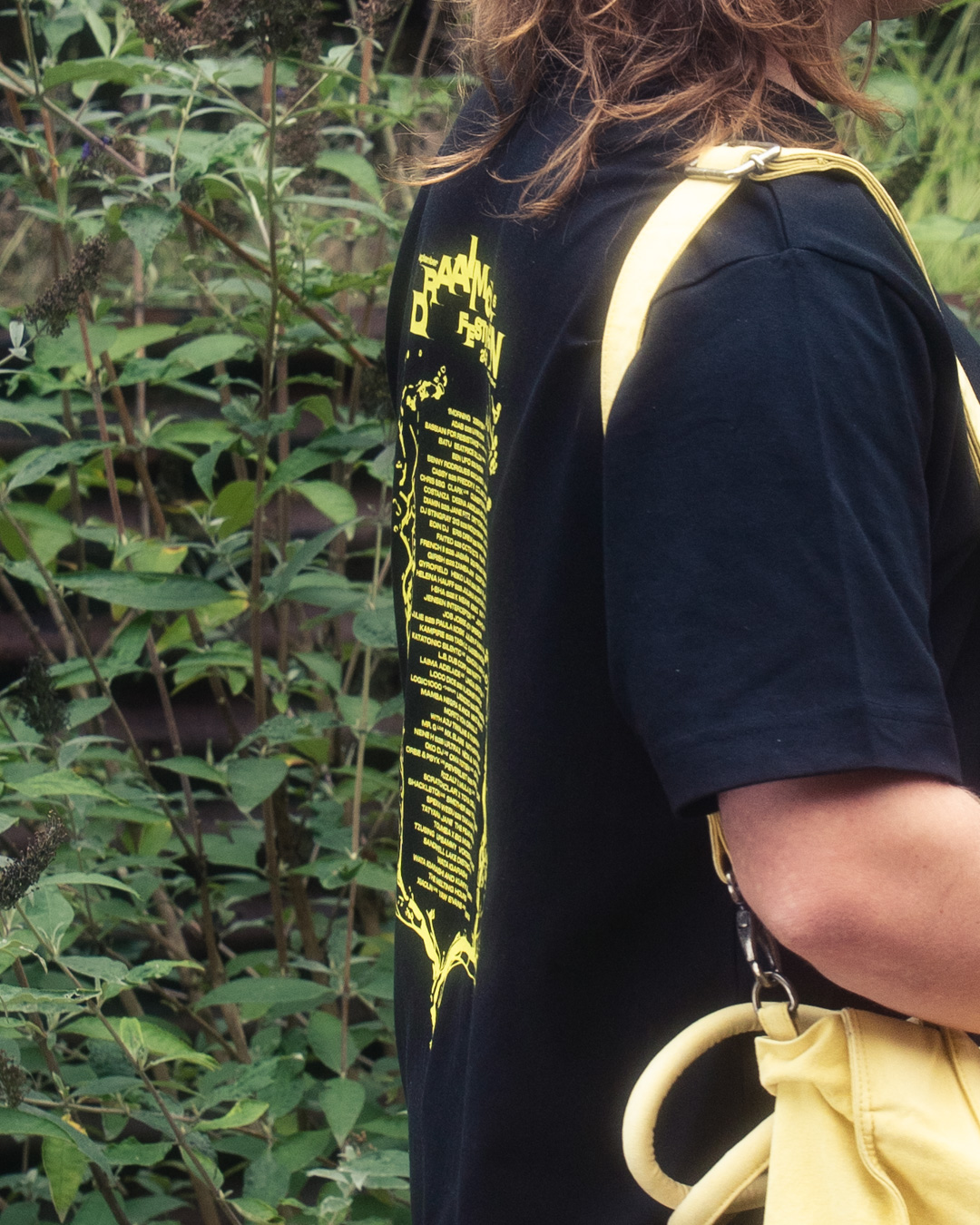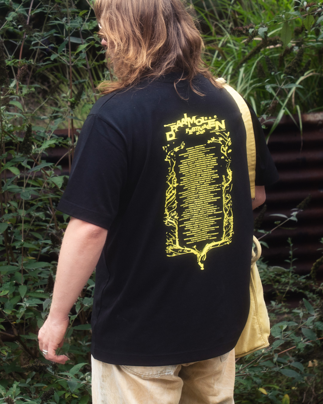 Draaimolen Festival 2025 line-up T-shirts with screen print on front and back as sold at the festival