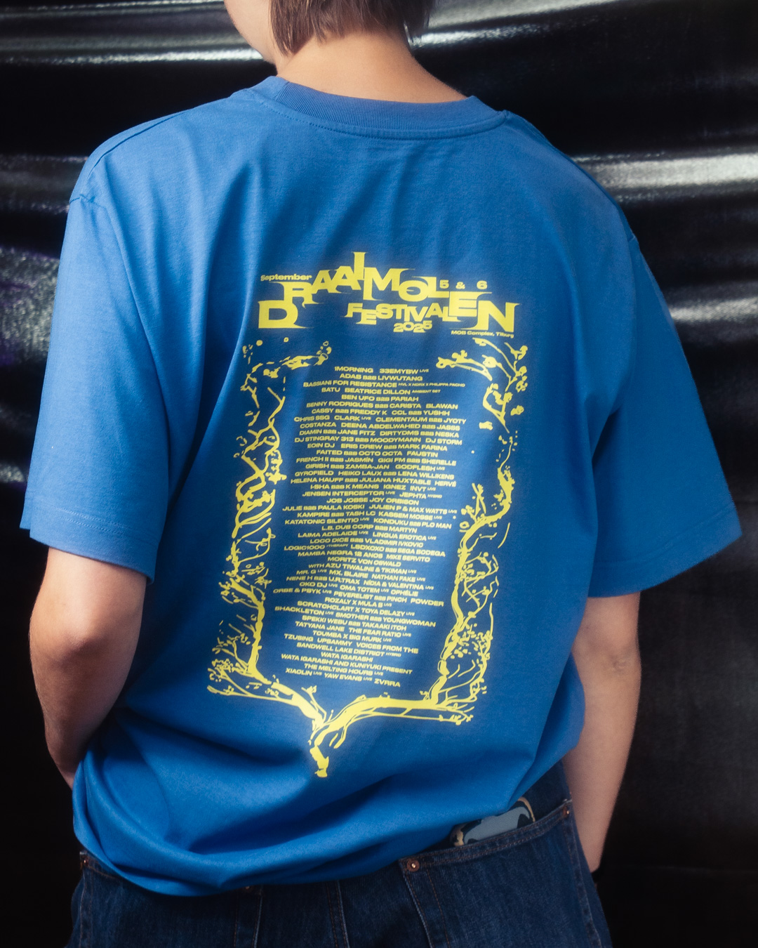Draaimolen Festival 2025 line-up T-shirts with screen print on front and back as sold at the festival